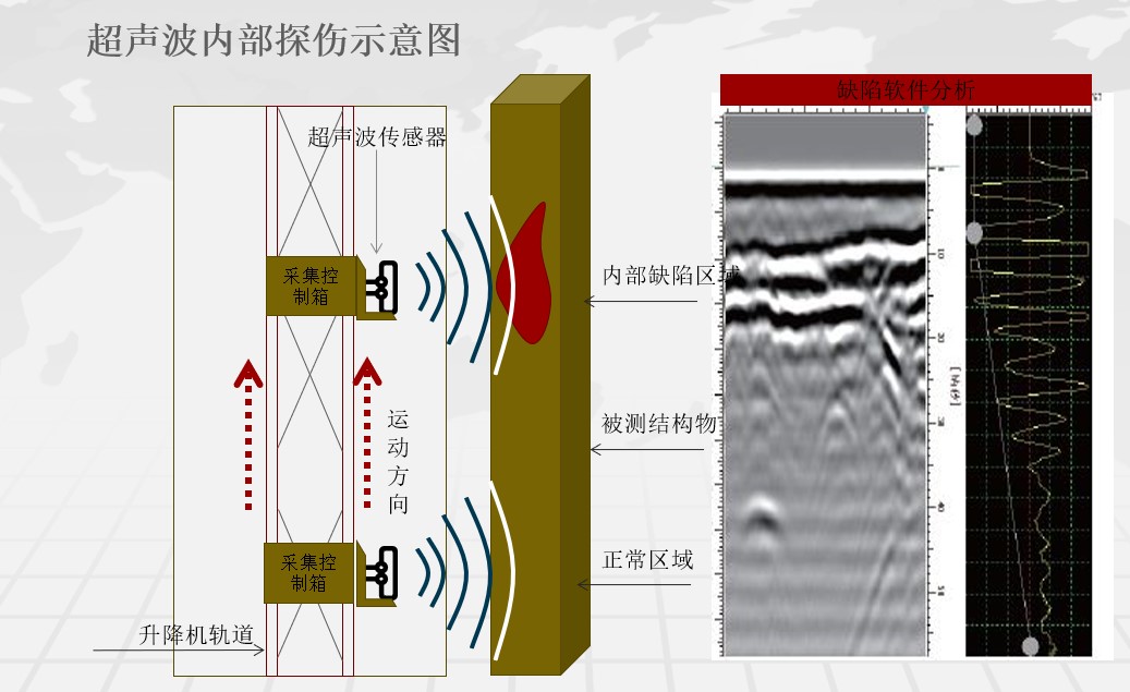 塔內(nèi)升降機可選配智能化檢測裝置,實現(xiàn)遠程操作對主塔內(nèi)砼結(jié)構(gòu)、錨索區(qū)等位置進行全自動掃描檢測,自動分析病害位置,大大降低了人工勞動強度,減少了人為因素檢測不到位或不實的情況,實現(xiàn)橋塔后期智能化檢測養(yǎng)護作業(yè)。
