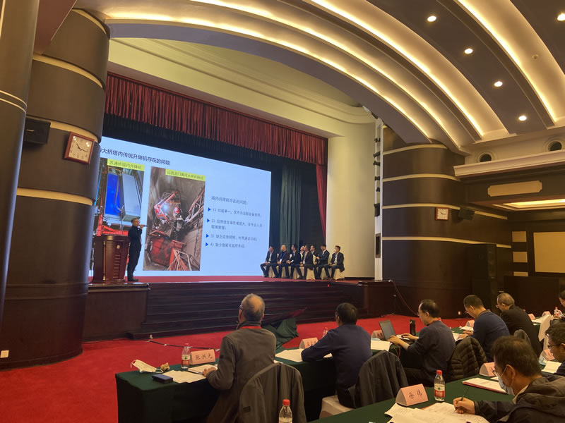 我司董事長(zhǎng)在2021橋隧產(chǎn)業(yè)技術(shù)及產(chǎn)品科技創(chuàng)新成果發(fā)布會(huì)暨第六屆橋隧技術(shù)及產(chǎn)品創(chuàng)新大賽發(fā)表演講,主題為“特大橋橋塔塔內(nèi)智能化檢養(yǎng)升降機(jī)”。